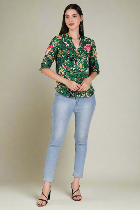 BoheeWohee Shop Cute Green Floral Print Tops for Any Occasion