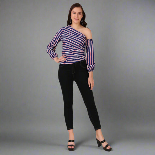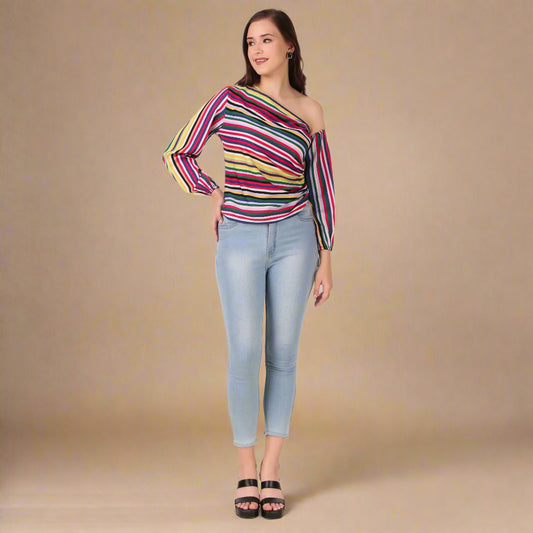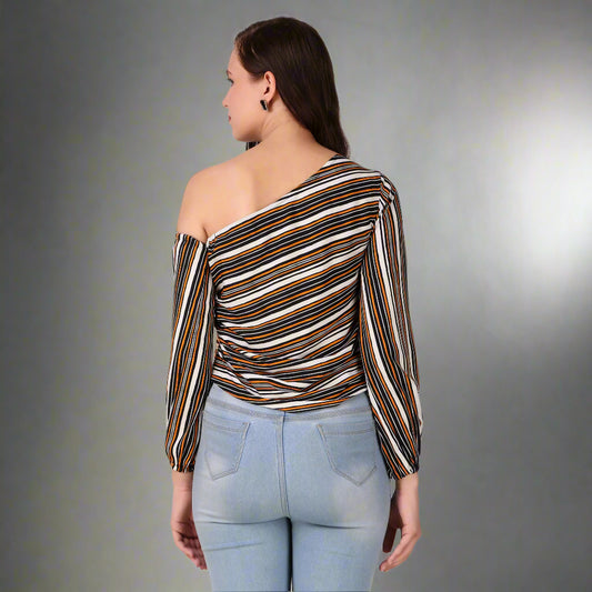 BoheeWohee Shop Online Striped One-Shoulder Tops for a Chic Look