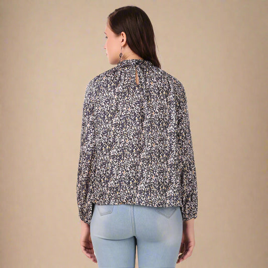BoheeWohee Off-White Marbled Print women's satin Top: Women's Collection '25
