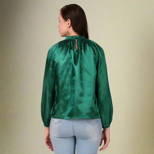 BoheeWohee Dress Up with Elegant Green Satin Tops