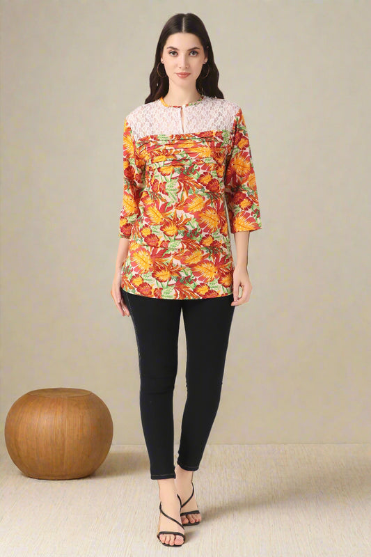 BoheeWohee Vibrant Green & Orange Floral Tunic Top: Shop Now!