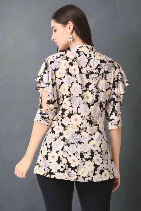 BoheeWohee Buy Women's Casual Yellow and Purple Print Shirt Here