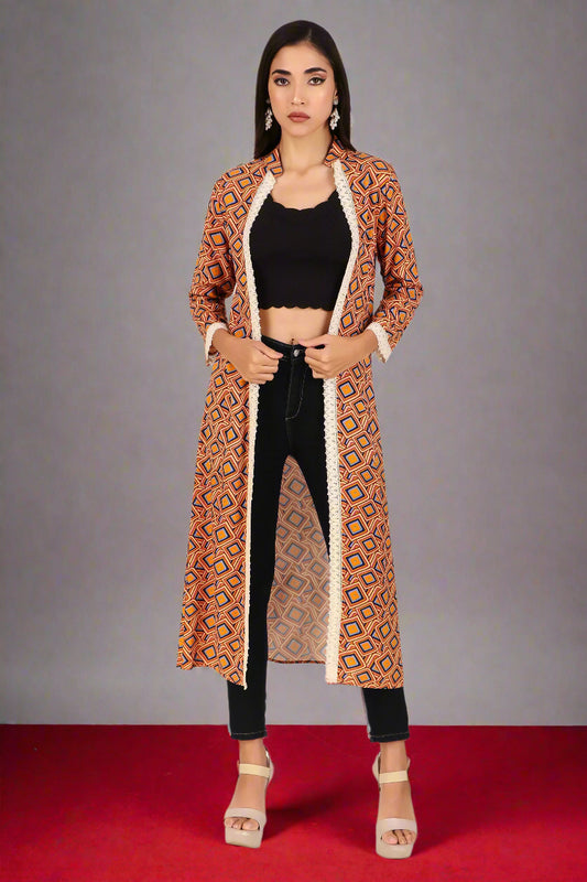 BoheeWohee Stylish Long Shrugs for Women with Exquisite Lase Detailing - Dark Tangerine