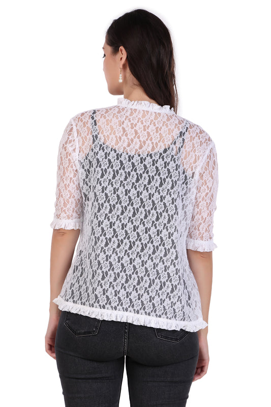 BoheeWohee Stylish Long Shrugs for Women with Exquisite Lase Detailing - Albescent White