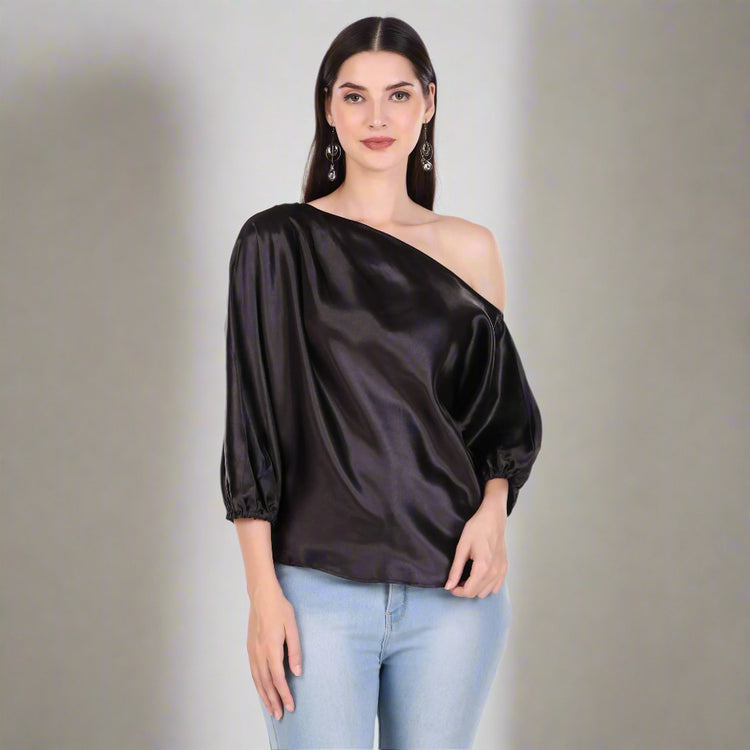A very trendy yet casual 1 shoulder top plain suitable for office, work, market visit or meeting up with friends. The top is made using soft & machine washable fabric. Women's Casual one shoulder Printed- Top | New Trendy Tops for Women | Tops for Jeans for Women | Stylish Tops for Women neck