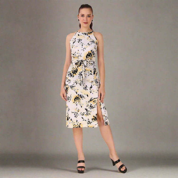 The BoheeWohee Women Midi Printed Regular Halter Neck Dress is a delightful combination of style, comfort, and practicality. Crafted from soft, easy-to-maintain fabric, this dress ensures you feel at ease all day while keeping your look effortlessly polished.
