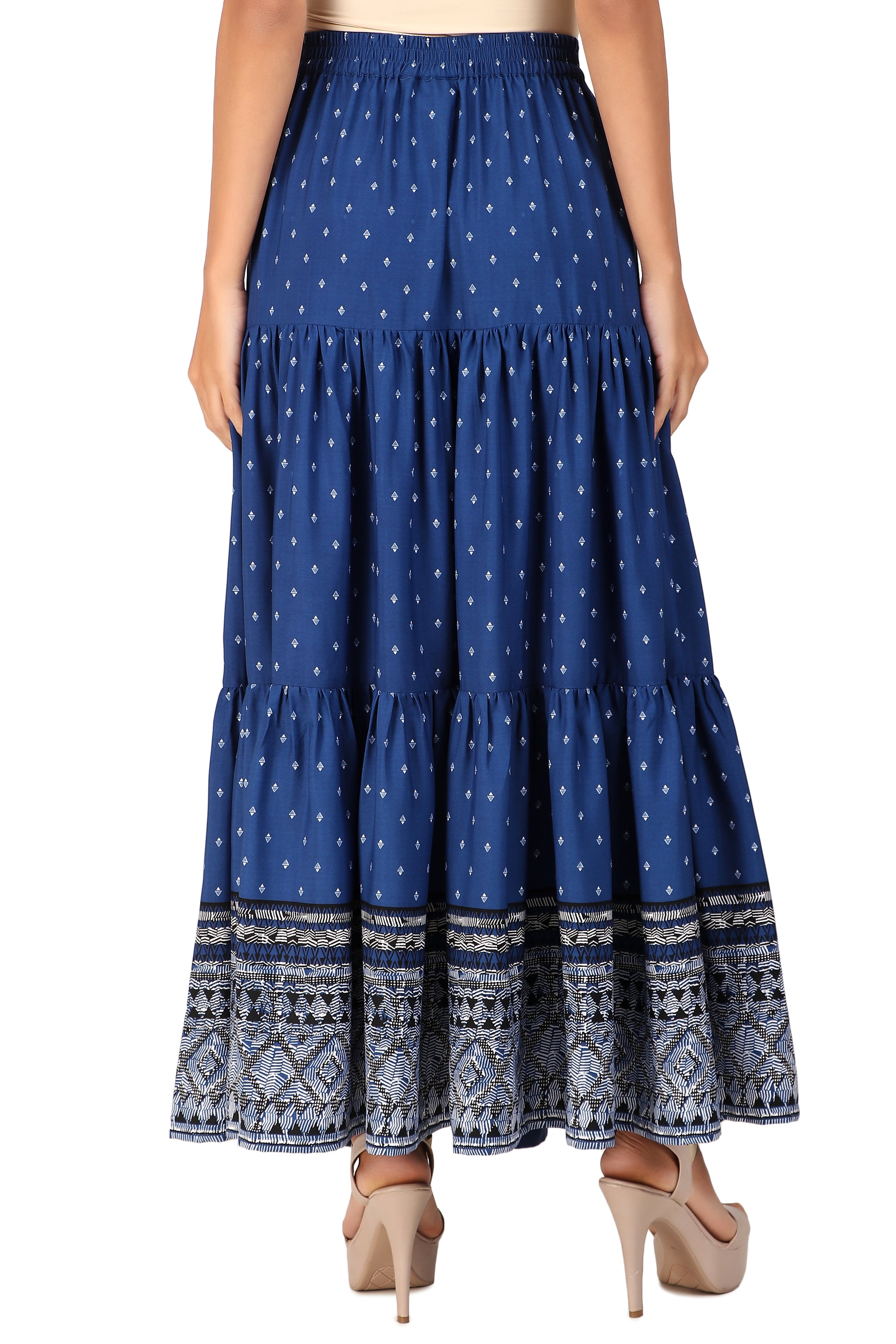 Boho Tiered Skirt with Front Button Opening-Midnight Blue