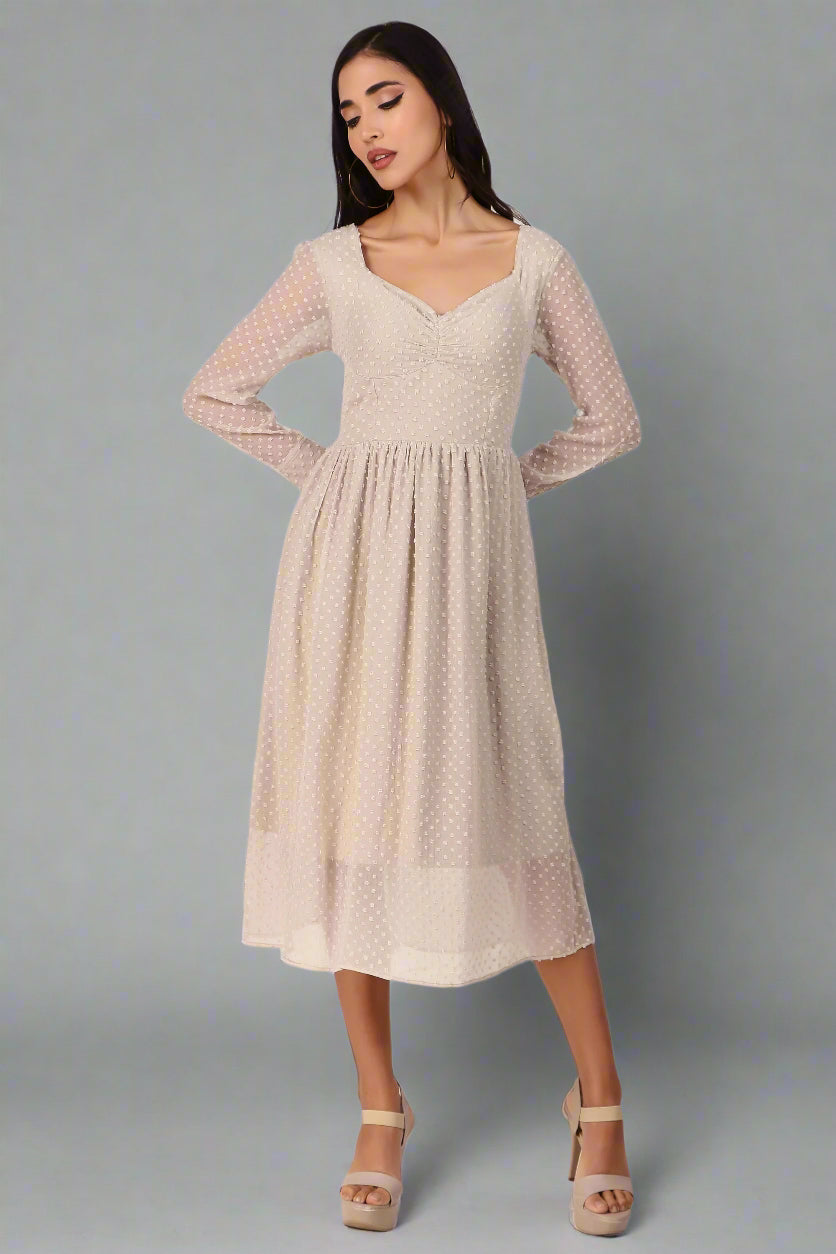 Chiffon Dress with Sweetheart Neckline and Long Sleeves - Light Pink