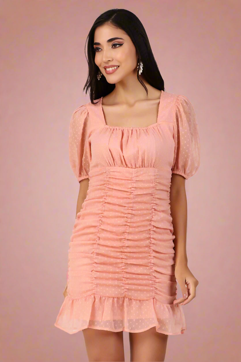 - Modern Appeal: Embrace the contemporary charm of a square neckline and short sleeves with elastic ends, perfectly complemented by vertical elastic for a gathered look at the front and back.