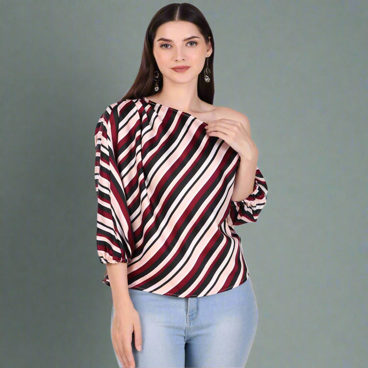 Striped One-Shoulder Top