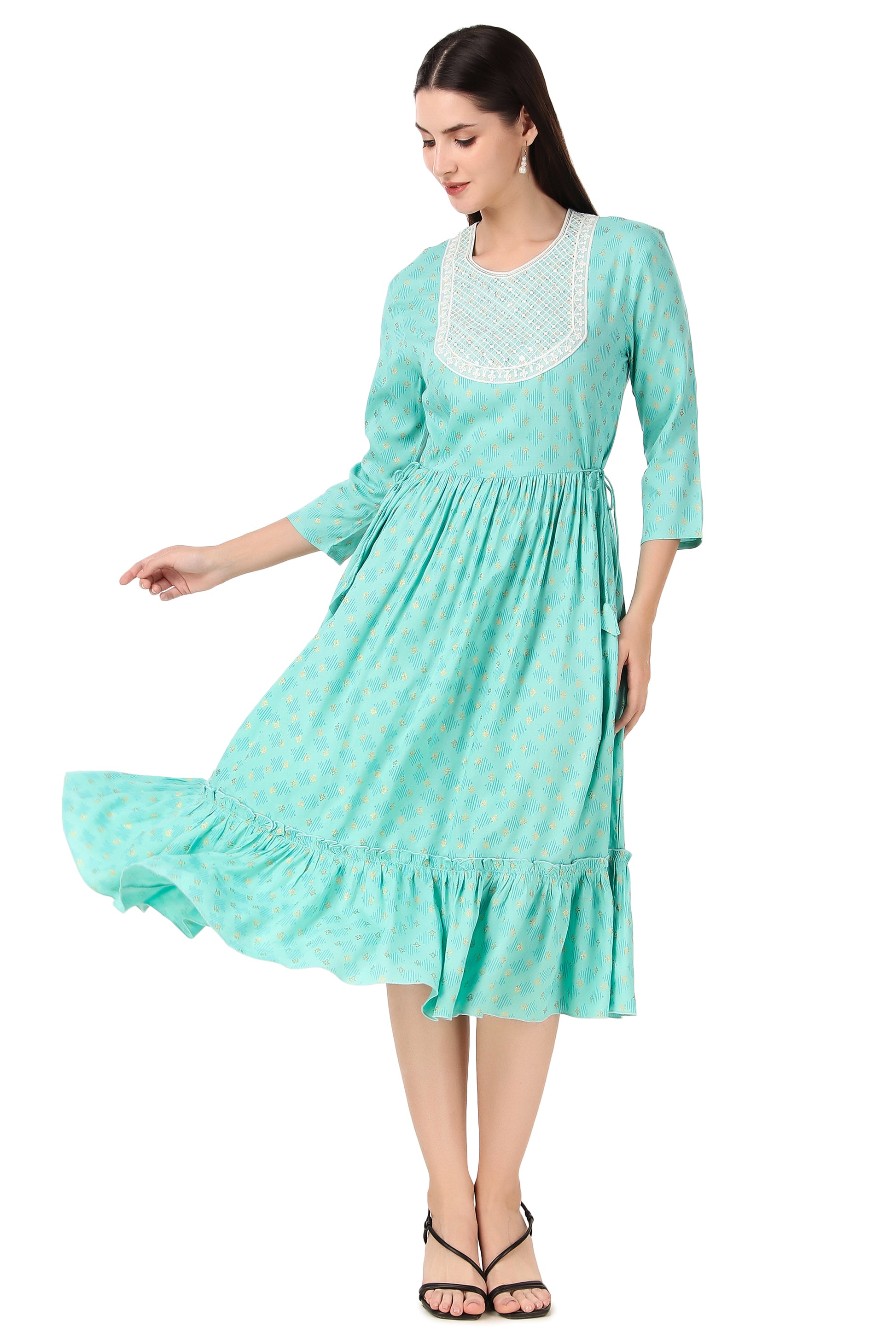 Midi Kurti Dress with Side Ties- Pale Turquoise