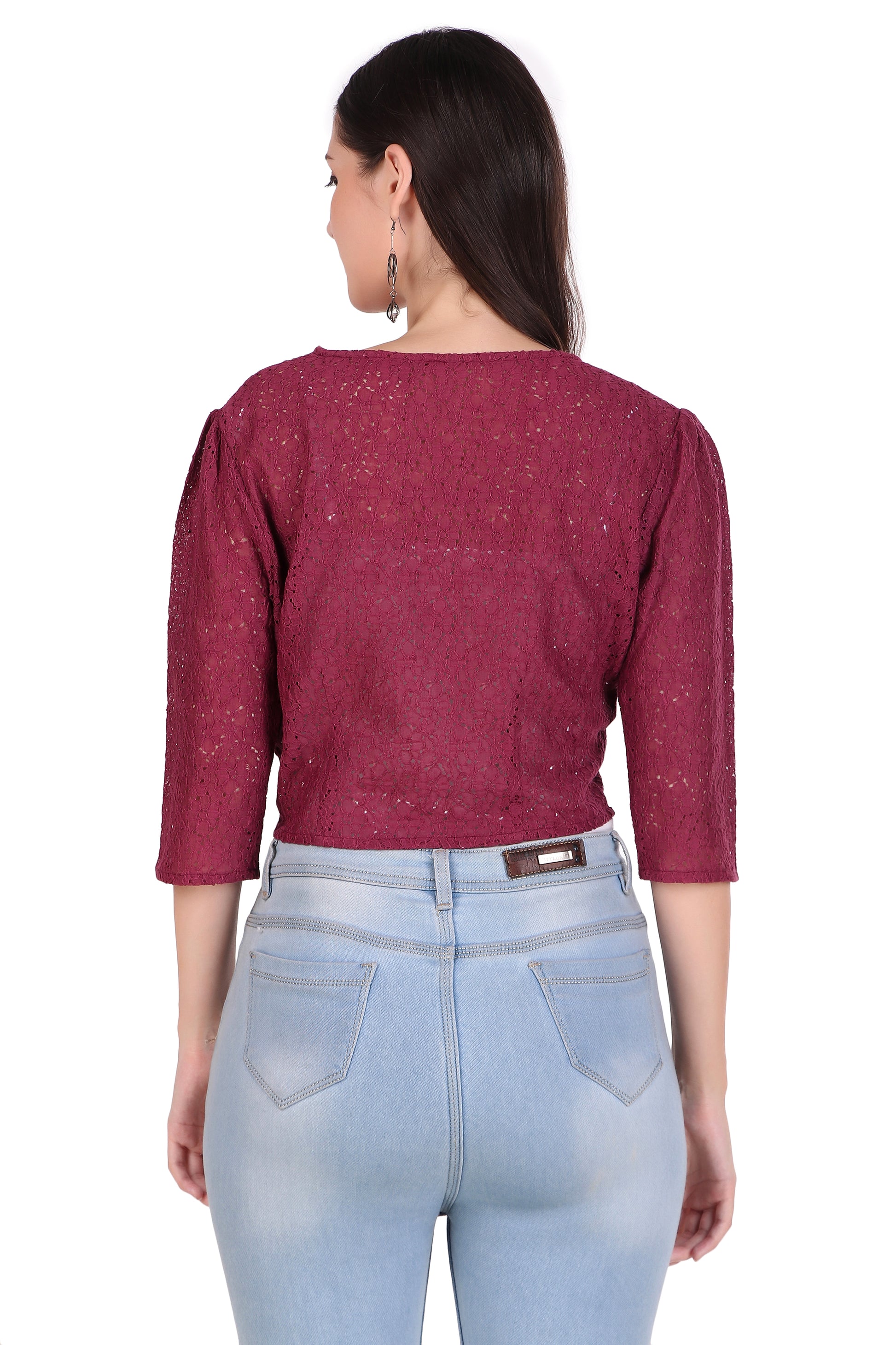 Cotton Lace Shrug-Aubergine