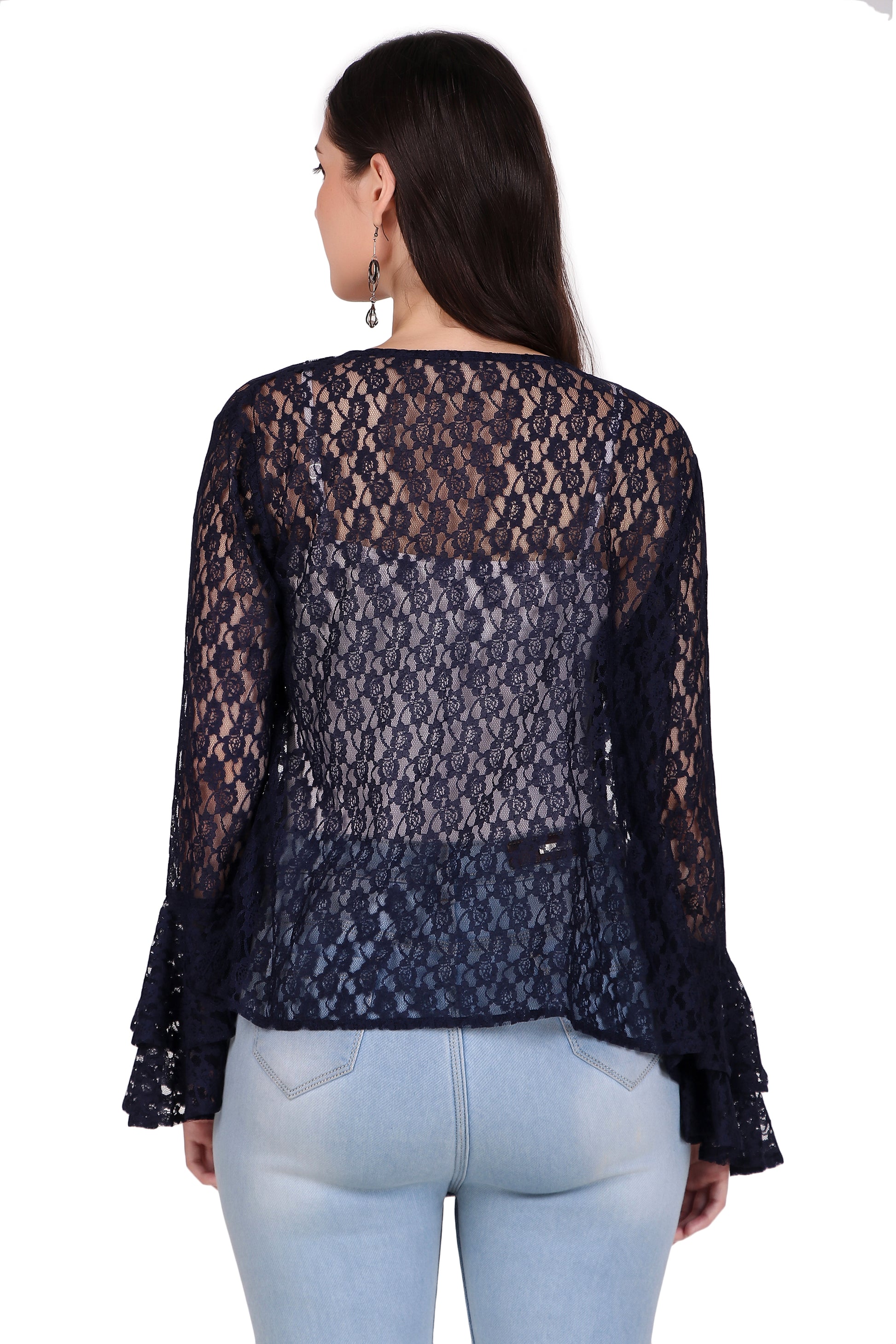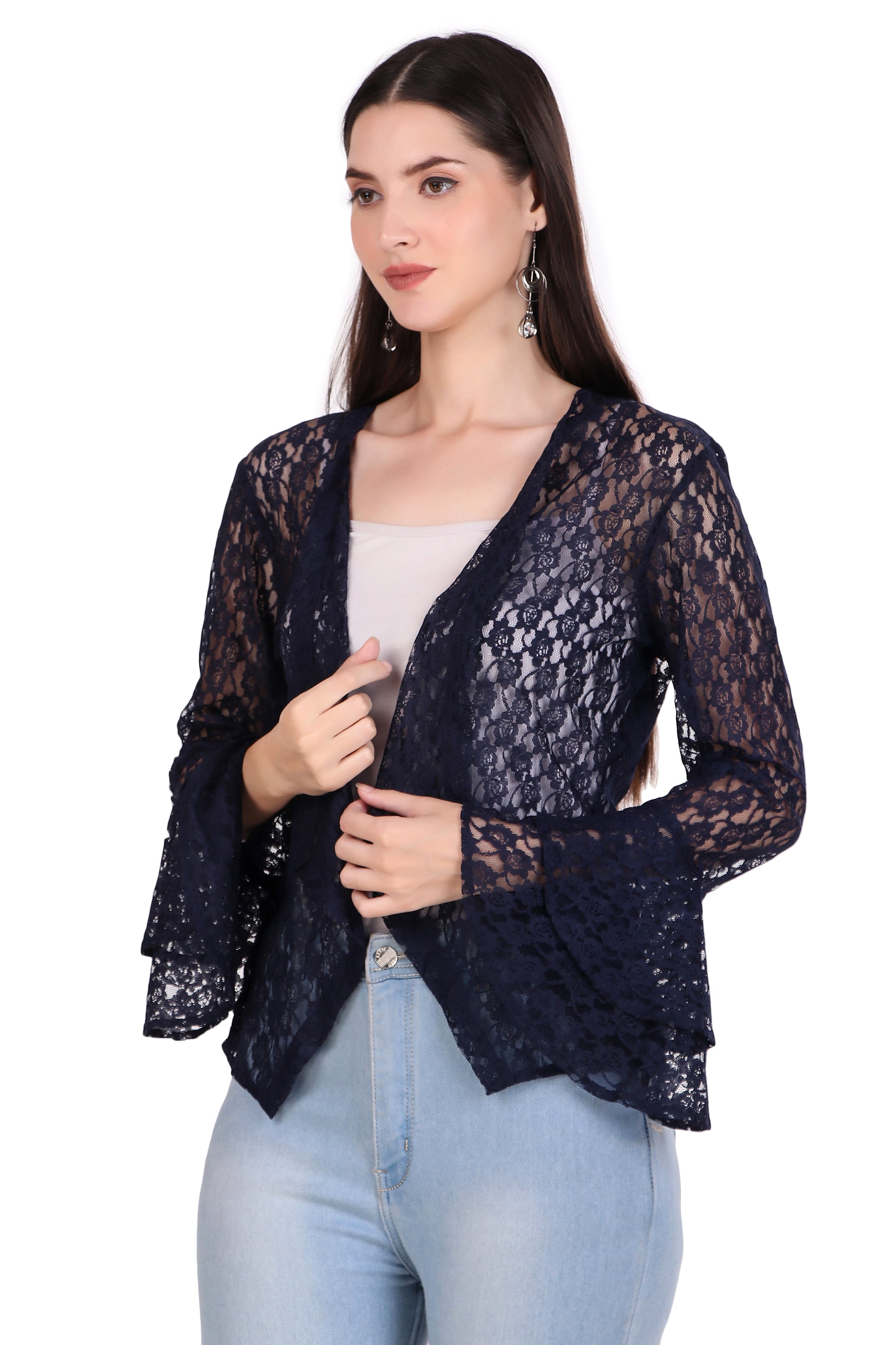 Lace Shrug with Double Bell Sleeves- Navy
