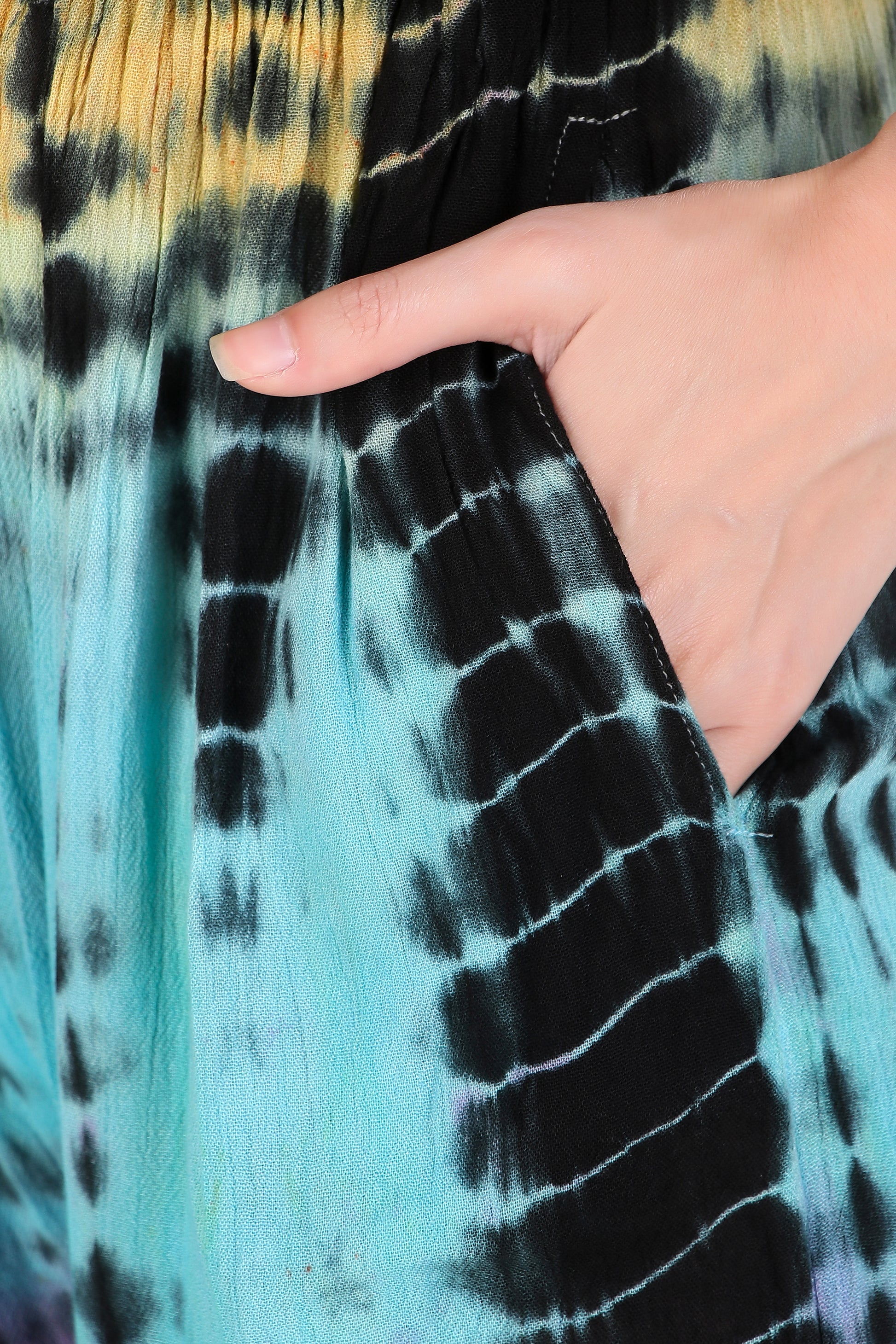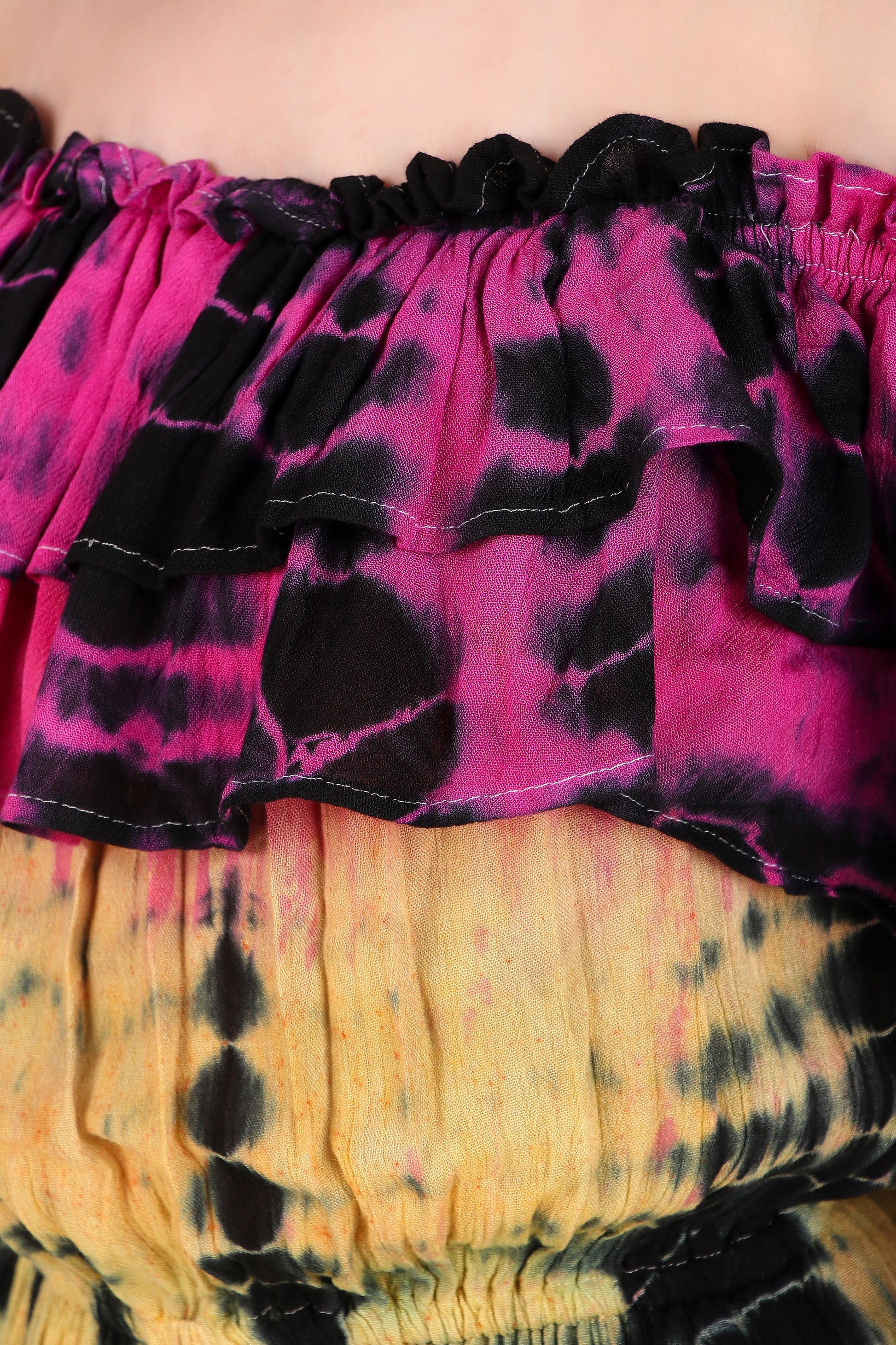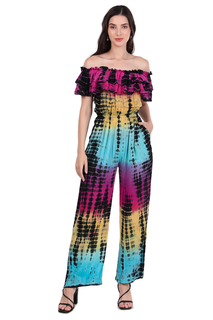 Off-Shoulder Jumpsuit with Double Frills and Pockets- TieDye